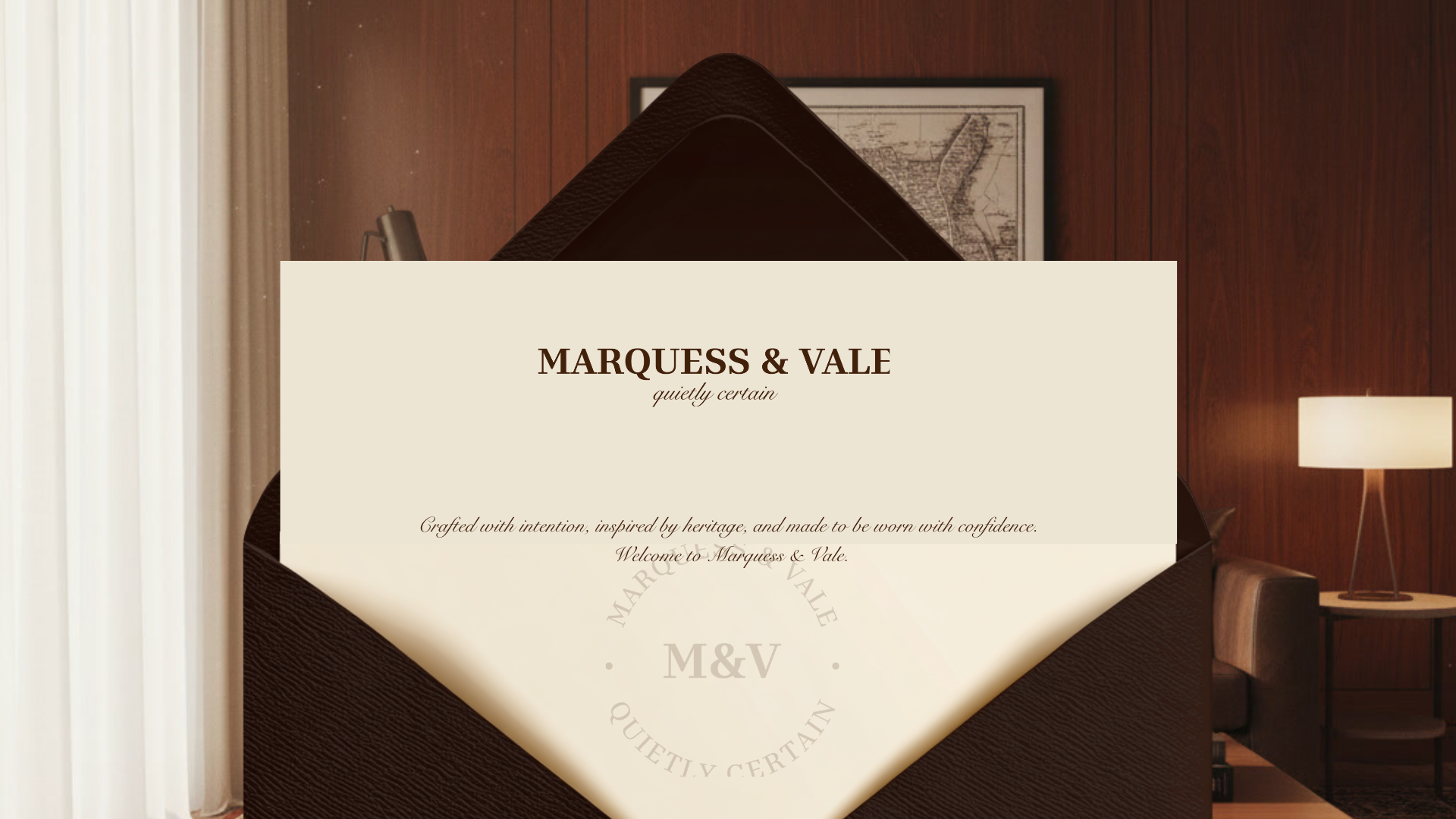Marquess & Vale is a contemporary fashion house built on clarity, restraint, and quiet confidence. Rooted in heritage yet designed for the present, the brand creates refined wardrobe essentials that transcend seasonal trends. Each piece is crafted with intention, emphasizing precision tailoring, elevated fabrics, and enduring quality. Rather than chasing attention, Marquess & Vale focuses on substance, permanence, and assured elegance. The result is a composed, timeless aesthetic for individuals who value meaning, discipline, and understated power.